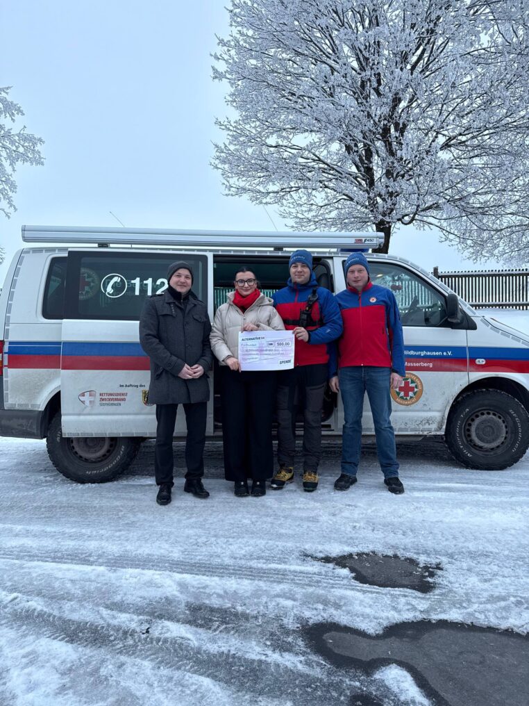 Das Mitglied der Alternative 54 Erfurt e.V., MdL Linda Stark, übergab den Spendenscheck Nr. 5.026 an die Bergwacht Masserberg e.V.